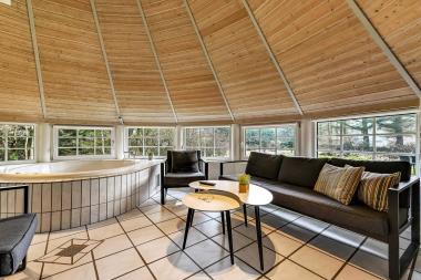 Parker bilen på den anlagte gårdsplads og begynd udpakningen. En dejlig entre med håndvask, vaskemaskine og tørretumbler byder jer velkommen og fører jer direkte ind i et flot, moderne, nyt køkkenhjørne fra 2018. Køkkenet har alt i service og køkkengrej og er også udstyret med keramisk kogeplade, indbygningsovn, emhætte, mikroovn, køleskab med fryseboks og opvaskemaskine. Tæt ved køkkenet står spisebordet til 8 personer, som hele familien kan samles ved når sulten skal stilles. Opholdsstuen har en dejlig hjørnesofa, hvorfra såvel danske som tyske kanaler kan ses på fladskærmen som er opsat på væggen. En dejlig brændeovn og en strømbesparende varmepumpe sørger for at huset kan opvarmes så man kan holde varme på de kolde efterårsdage og et dejligt genindvindsanlæg sørger for udskiftning af og op til 92% af luften i huset. Det giver et fantastisk indeklima og er med til at spare på el-regningen. 4 store og lyse værelser (1DS, 1DS, 2ES, 1KS). Husets badeværelse har bruser, toilet, håndvask, bruser og klinkegulv med gulvvarme. Gå forbi husets TV og luk døren op til et helt specielt og unikt wellness rum med stort spabad, sauna og ekstra badeværelse med bruser, toilet og håndvask samt klinkegulv med gulvvarme. I wellnessrummet er der også behagelige siddemuligheder, ligesom der en installeret et ekstra TV, så det er muligt at sidde i spaen og se TV.Hele huset har regøringsvenlige gulve – klinker i stue og køkken samt trægulve i soveværelserne. Ikke ryger hus. 2 husdyr tilladt.