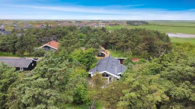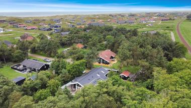 Dette flotte feriehus, som ligger på et af de bedste grunde i området kun små 200 M. fra Vesterhavet og ved lille skov, er alt hvad en god ferie behøver. Grunden på 2500 qm ligger fredelig og direkte op til store åbne friarealer. Huset har store vinduespartier og er derved særdeles lyst og venligt. I huset er der 3 dejlige værelser og en hems med 2 madrasser. I de 3 værelser er der hhv. 2 dobbeltsenge, 2 enkeltsenge. Parabol dog kun med tyske kanaler. Der er 2 gulvopvarmede badeværelser – det ene med spabad og med direkte adgang til sauna. Man kan altid finde læ og nyde solen på terrassen på 86 kvm, som omgiver huset. Havemøbler, liggestole, gynge og sandkasse. – Husdyr ikke tilladt –