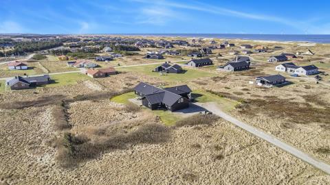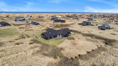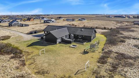 Huset er har 3 fantastiske,terrasser – hvoraf den ene er indhegnet. Der er man altid mulighed for at finde læ på feriens solrige dage. Her finder man naturligvis havemøbler og liggestole samt grill. Legestativ med gynge Gyngestativ og ruchebane til børnene. På grunden er der også sandkasse og fodboldmål. Dette storslåede feriehus er beliggende på en ca. 2.600 m2 skøn klitgrund i Vrist og indbyder til leg og boldspil kun ca.400 m fra stranden. Huset ligger 2200 meter fra dagligvarebutikker. Indenfor kort køreafstand nåes både den aktive handelsby i Lemvig med flere specialbutikker eller den unikke fiskerby Thyborøn, som udover den aktive fiskerihavn også byder på badestrand og op til flere aktivitetstilbud, som alle er et besøg værd.