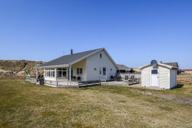Klitgrunden til som huset ligger på er ca. 2.588 m2. Fra ende af grunden er der egen sti – direkte til Vesterhavet. I klitten er der et pragtfuld Platou med solvogne. Her finder du altid læ og en plads i solen. Fra opholdsstuen er der udgang til et dejligt, delvist overdækket terrasseanlæg med havemøbler, parasol, liggestole og grill som kan flyttes rundt alt efter vejr og vind. Nyd solen eller en grillaften til lyden af bølgernes Brusen som høres i baggrunden. Der er også et gyngestativ på grunden. Perfekt beliggende feriebolig med klitudsigt, der vil danne rammerne om jeres hel unikke ferie tæt ved Vesterhavet. Her er fantastiske omgivelser, og det er en oplevelse i sig selv at bo helt tæt ved de høje klitter, som er det eneste der adskiller huset fra Vesterhavet. Huset er beliggende for enden af en blind vej kun ca. 100 m fra Vesterhavet. Oplev på nærmeste hold, at Vesterhavet hverdag fortæller en ny historie. Besøg de mange attraktioner og oplevelser som nås indenfor max 30 min eller besøg fiskerbyen Thyborøn eller den dejlige handelsby Lemvig med masser af specialbutikker.