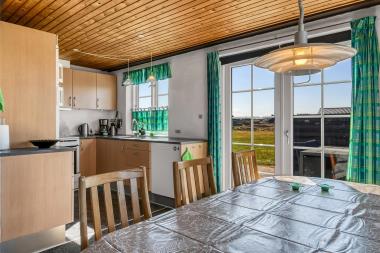 Kun 130 meter fra Vesterhavet lige bag digerne ligger dette sten feriehus i 2 etager. I stueetagen er der en stor hyggelig indrettet stue med brændeovn, DVD, stereoanlæg med cd og farve tv med parabol (dog kun med tyske kanaler.). Køkkenet er udstyret med mikroovn og opvaskemaskine. Huset har 4 soverum : (DS)( DS) (DS) På 1 sal er (DS). Derudover er der på 1. sal en hyggelig stue med TV.. Åben terrasse med havemøbler og liggestole. Toilet med bruser – vaskemaskine og tørretumler. Stor naturgrund på 2200 m2. Trådløst internet.