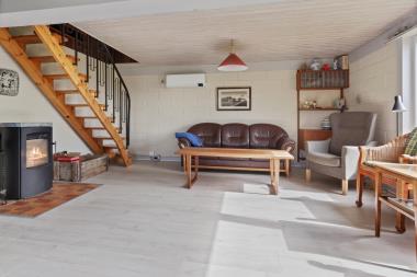 Huset er ældre og delvist renoveret og indrettet i en rustik, hyggelig stil med trælofter, klassiske møbler og små detaljer, der emmer af historie og personlighed. Ferieboligen strækker sig over to etager og har plads til op til seks personer. I stueplan finder du et soveværelse med dobbeltseng samt en rummelig opholdsstue med både læder- og polstermøbler, brændeovn, varmepumpe. På 1. sal er der en lille stue med TV med både danske og tyske kanaler. De to øvrige soveværelser ligger ovenpå og har hver to enkeltsenge – ideelt til både familier og vennepar.