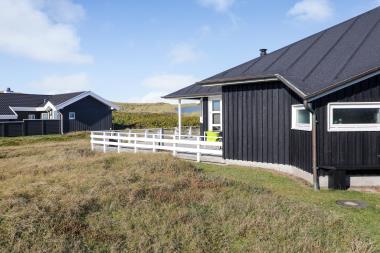 Fra opholdsstuen er der udgang til en dejlig terrasse med parasol, grill, havemøbler, liggestole samt udsigt til de høje klitter. Fra entréen er der udgang til endnu en lukket terrasse, som er det perfekte opholdssted for både børn og voksne. En feriebolig af høj kvalitet som danner den perfekte ramme for en ferie meget tæt på Vesterhavet. Hvad enten du er til aktive gåture ved stranden, tager cyklen efter morgenbrød eller blot ønsker fred og ro i unikke omgivelser, så giver dette feriehus dig alle muligheder. Der er kun ca. 1.500 m til det nærmeste supermarked. Legeplads og boldbane findes blot 100 m fra huset.