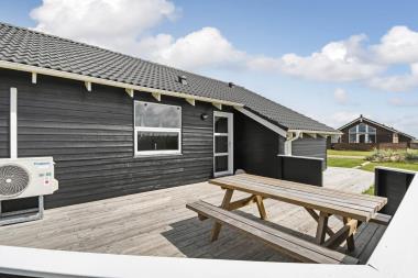 Huset har udgang til 3 terrasser mod syd, øst og vest, som gør at det altid er muligt at finde en plads i solen. Havestole, liggestole, parasol og grill fuldender den dejlige oplevelse det er at bo i den friske luft i nærheden af Vesterhavet. Fra Husets 1.200m3 store naturgrund er der kun 300 m til Vesterhavet og 800 m til nærmeste indkøbsmulighed.