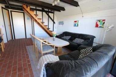 Dette rummelige sten-/træhus er indrettet med et kombineret køkken og stue, stuen er lyst og venlig og det store vinduesparti giver et godt lysindfald i rummet. Stuen er indrettet med lædermøbler og tæt på køkkenet står spisebordet, der er F-TV med danske (DR1 og DR2) og tyske programmer, Radio, CD. En dejlig brændeovn giver en behagelig varme også i den kolde tid. Køkkenet er godt udstyret og indeholder et el keramisk kogeplade, emhætte, køle-/fryseskab, opvaskemaskine, indbygningsovn. Der er stengulve i alle opholdsrum. På 1. sal er der en opholdsstue med polstermøbler og TV (kun til at spille på spillekonsol) herfra er der udgang til overdækket balkon. Huset råder over 3 soverum: 1DS (1. sal) + 1DS + 1E. Badeværelse med håndvask, bruser, toilet, gulvvarme. Rygning ikke tilladt. Max 3 husdyr er tilladt.