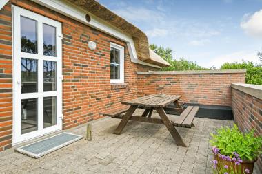Rigtig flot og rummeligt feriehus i sten med stråtag, her er der plads til 6 personer. Huset ligger ugenert på en klit/naturgrund direkte ved en lille plantage og tæt på den nyrenoverede legeplads på Ibsensvej. Efter I har parkeret bilen og låser døren op til dette dejlige feriehus kommer I ind i en fordeler gang, som også har god plads til at hænge jakker og stille støvlerne. Herfra er der adgang til husets 3 soveværelser som er indrettet med 1DS + 1DS + 2S. Desuden er der også adgang til husets badeværelse som er opdelt i et separat rum som har toilet og håndvask og det andet badeværelse er med bruser, spabad og adgang til sauna, begge badeværelser er med gulvvarme. Køkkenet som er kombineret med stuen er meget veludstyret med alt hvad man behøver i ferien såsom glaskeramisk komfur, emhætte, køle-/fryseskab, mikroovn og opvaskemaskine. På den anden side af halvmuren fra køkkenet står spisebordet, så det er nemt at servere den tilbragte mad. Stuen er desuden med brændeovn som sørger for en behagelig varme også i den kolde tid. Derudover er der behagelige møbler, F-TV med parabol til tyske kanaler, og danske kanaler, DVD og CD afspiller og dab radio. Der er trægulve i alle rum på nær badeværelserne som er med klinker. Vaskemaskine. Ikke rygerhus. Husdyr ikke tilladt.