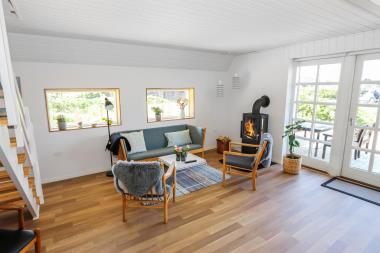 Huset som er 100 m2 fordelt på 2 etager er renoveret i 2020. Veludstyret køkken / alrum med alt i service / køkkengrej og alt i hårde hvidevarer. Køkkenhjørnet har bl.a. komfur med glaskeramiske kogeplader, emhætte, opvaskemaskine og køleskab med fryseboks. Nyd maden ved spisebordet, kig ud af vinduet og se de store høje klitter ved Vesterhavet eller slap af i de pæne møbler eller afspil musik fra bluetooth højtaleren. Nyd flammerne ved den hyggelige brændeovn som sammen med den opsatte varmepumpe i stueetagen sørger for et minimalt forbrug til opvarmning. 3 dejlige soverum (1DS, 1DS, 1DS). Badeværelse med toilet, håndvask, bruser, vaskemaskine og klinkegulv. Der er praktiske hårde gulve i alle opholds- og soverum. Ikke ryger hus. Husdyr må ikke medbringes.