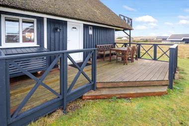 Dette idylliske nyrenoveret feriehus i træ med stråtag er beliggende på en naturgrund tæt på Vesterhavet, huset er bygget i 2 etager, har sauna og har plads til 6 personer. I 2022 er huset moderniseret blandt andet nye møbler, nye tæpper og nyt køkkenservice m.m. Der er gratis trådløs Fiber-internetadgang.