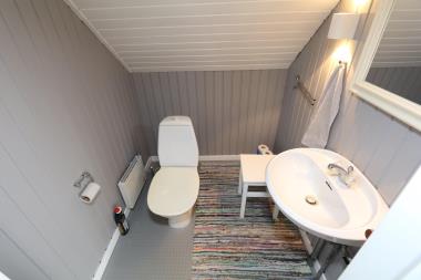 Via den brugervenlige trappe i entréen kommer I let op på 1. Etage. Her er der endnu et dejligt opholdsrum, 2 soveværelser (1DS, 1DS) samt et ekstra toilet. Lofthøjden på 1. etgae er 1,85 m. Fra 1. etage er der en fantastisk udsigt til klitterne. Desuden er 2 store vinduesfag i hver sin side af taget. Disse store tagvinduer giver en fantastisk lysindfald og en unik mulighed for at nyde udsigten til den ekstraordinære beliggenhed. Ved de bløde polstermøbler er der også et smart-TV der giver mulighed for streaming af egne abonnementer som bl.a. kan være netflix, HBO eller lignende samt DVD/CD afspiller. På det ekstra toilet er der håndvask, toilet og linoleumsgulv. Lofthøjden på 1. sal er 1,85 cm.