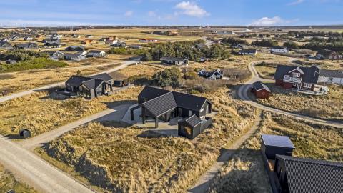 Pragtfuldt nybygget og dejligt beliggende luksushus, der ligger tæt på klitterne ved Vesterhavet, med fantastisk udsigt over området og til klitterne ved Vesterhavet. Et moderne feriehus, som er noget ganske særligt. Der er en stor træterrasse omkring huset, hvor der er en udendørs vildmarksspa, som bliver opvarmet med træ, udendørs bruser, udendørs sauna samt havemøbler, grill og solvogne. Der er gratis fibernet. Et hus med plads til 10 personer, som kan nyde denne luksus.