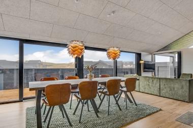 Velbeliggende feriehus med fantastisk udsigt mod klitterne og kort afstand til det brusende Vesterhav. Nybygget feriehus hvor der er tænkt på alt, detaljerne ved dette feriehus er ikke til at overse, og det hele går op i en helhed, der danner rammerne om den perfekte ferie. Her er alt hvad man har brug for. Stor lukket terrasse med loungeområde, panoramaudsigt mod klitterne, der virkelig er betagende og unik.