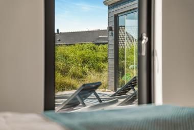 Når dagen går på hæld, eller vejret inviterer til indendørs hygge, kan man trække sig tilbage til den vidunderlige udestue – et af husets helt særlige højdepunkter. Denne lukkede havestue fungerer som et ekstra opholdsrum året rundt og giver følelsen af at være midt i naturen, men med komforten fra stuen. Store vinduespartier åbner op mod klitterne og landskabet, og herinde er der en stemning af fred og nærvær. Rummet er møbleret med et ekstra havebord og stole, perfekt til en stille morgenmad, en god kop kaffe i eftermiddagssolen eller en aften med kortspil og levende lys, mens mørket sænker sig over klitlandskabet udenfor. Det er et rum, hvor tiden står stille – et sted til samvær, fordybelse og udsigt, der tager pusten fra én. Uanset om solen bager eller vinden suser udenfor, er det et fantastisk sted at opholde sig – og for mange bliver det hurtigt husets foretrukne oase.