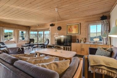 Dette feriehus i 2 etager har en særdeles fremragende beliggenhed – direkte på en høj beliggende klitgrund der går direkte ned til stranden. Tættere på havet og stranden kan man ikke komme. Huset er pænt møbleret og fra 1. sal er der udsigt til klitterne og området. Desuden er der fra den sydvendte terrasse på 1. sal udsigt over området. Fra denne kan du nyde synet af havet og solnedgangen. Ingen udlejning til institutioner kun til familier. Huset er indrettet med bl.a. spabad til 2 personer og sauna. Ønsker du at bo direkte ved havet er dette det perfekte hus for tættere på vandet kan man ikke komme. Gratis internetadgang. Stue: Brændeovn, F-TV med parabol, DVD, stereoanlæg med CD. Køkken: El-komfur, køle-/fryseskab, mikroovn, opvaskemaskine. 4 soverum: 1DS + 1DS + 2S + 2S. Badeværelse: Toilet, bruser, sauna, spa, gulvvarme. Gæstetoilet: Toilet. Vaskemaskine og tørretumbler. Klimaanlæg. Havemøbler og grill. 2 husdyr tilladt. Huset udlejes kun til familier og privatpersoner.