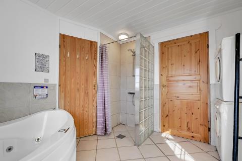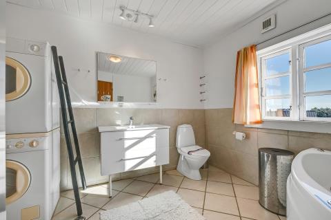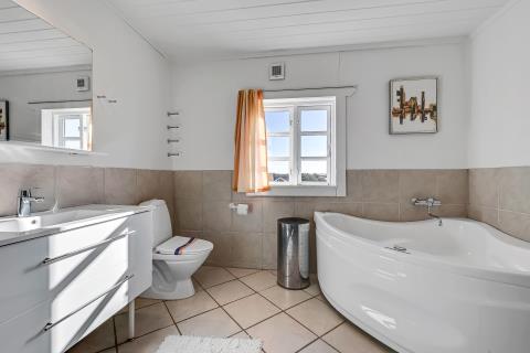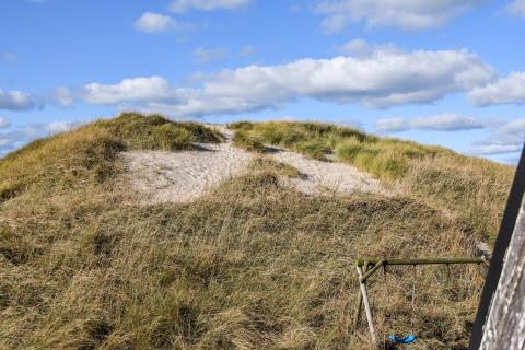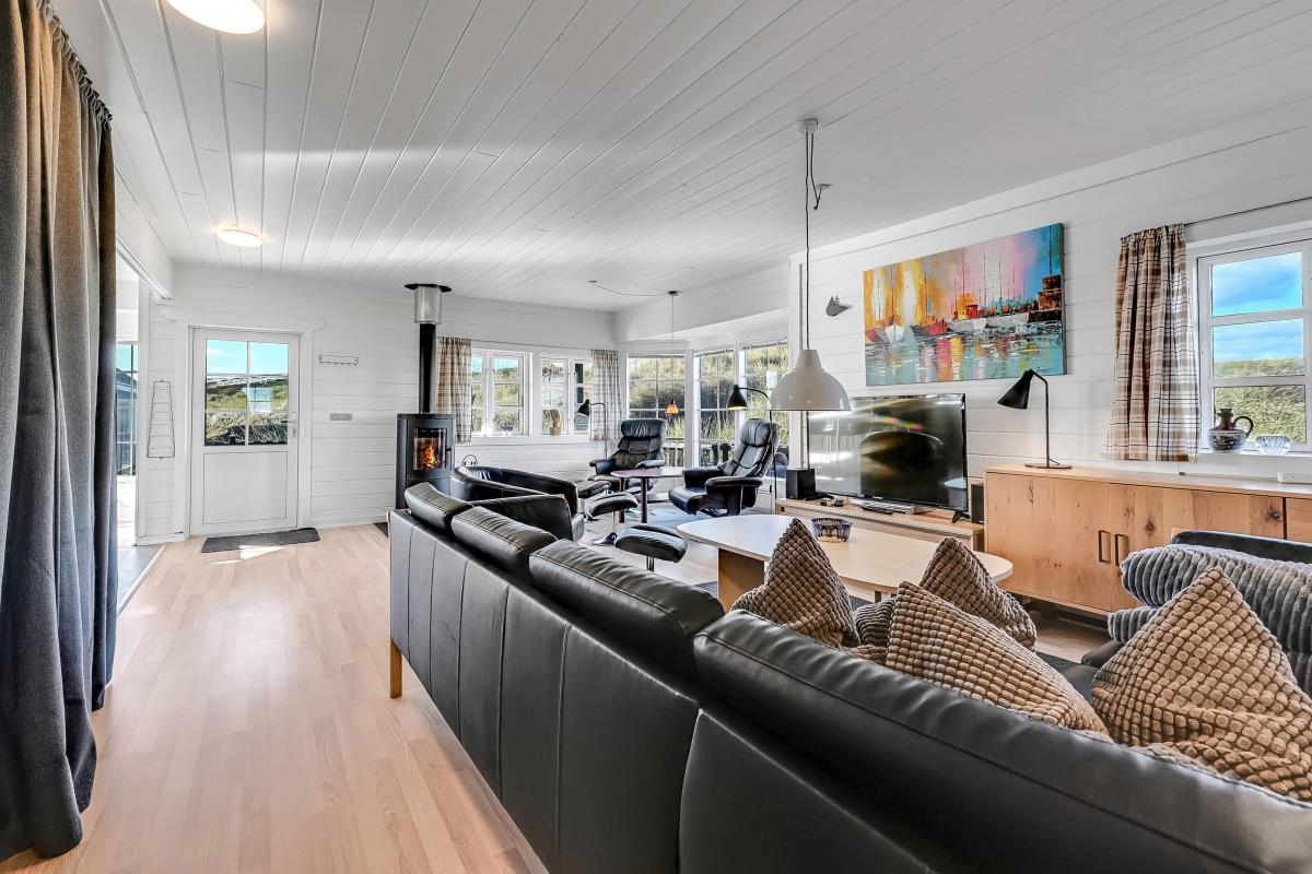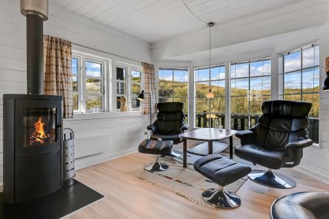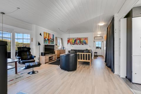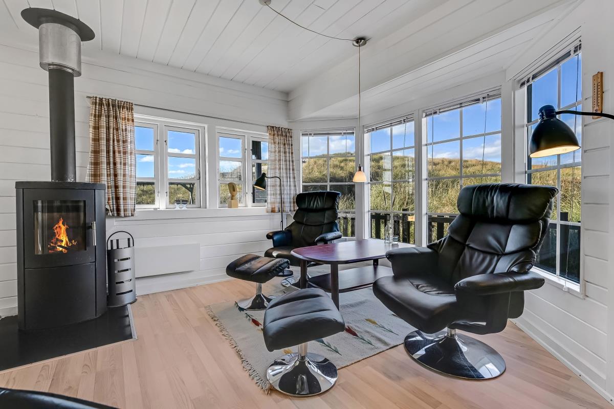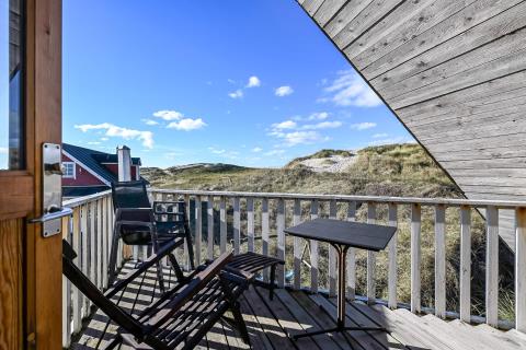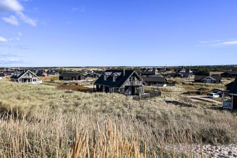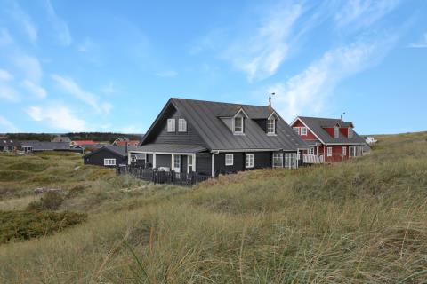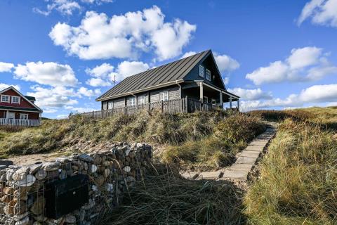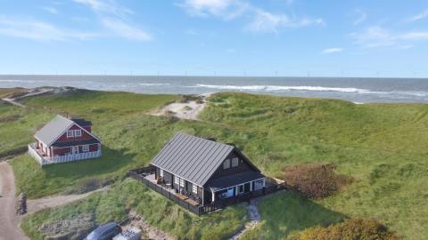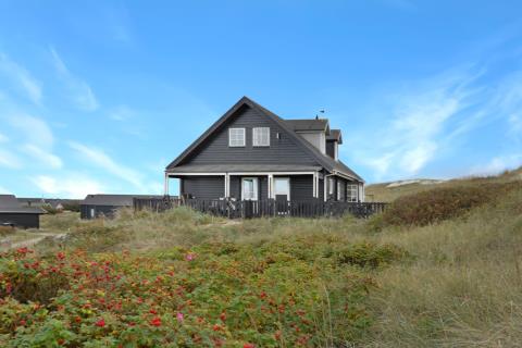 Dette feriehus i 2 etager har en særdeles fremragende beliggenhed – direkte på en høj beliggende klitgrund der går direkte ned til stranden. Tættere på havet og stranden kan man ikke komme. Huset er pænt møbleret og fra 1. sal er der udsigt til klitterne og området. Desuden er der fra den sydvendte terrasse på 1. sal udsigt over området.. Ingen udlejning til institioner kun til familier. Huset er indrettet med bl.a. spabad til 2 personer og sauna. Ønsker du at bo direkte ved havet er dette det perfekte hus for tættere på vandet kan man ikke komme. Gratis trådløst internetadgang Stue: Brændeovn, F-TV med parabol, DVD, stereoanlæg med CD. Køkken: El-komfur, køle-/fryseskab, mikroovn, opvaskemaskine. 4 soverum: 1DS + 1DS + 2S + 2S. Badeværelse: Toilet, bruser, sauna, spa, gulvvarme. Gæstetoilet: Toilet og håndvask. Vaskemaskine og tørretumbler. Klimaanlæg. Havemøbler og grill. 2 husdyr tilladt. Huset udlejes kun til familier og privatpersoner.