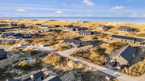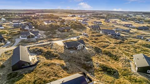 Feriehuset er beliggende på en 1.200 m2 stor klitgrund kun 250 meter fra Vesterhavet. Dejligt terrasseanlæg med havemøbler, solvogne og grill. Nyd den helt unikke mulighed det er at sidde på terrassen samtidig med at man kan hører Vesterhavet lige på den anden side af klitterne, Der er også rig mulighed for at nyde solen, hinanden eller en god grillaften. Gå en tur med hunden i det rolige feriehusområde, henover de høje klitter og straks derefter åbenbarer Vesterhavet sig. Hver dag byder Vesterhavet på nye maleriske oplevelse, der invitere til en frisk gå- eller løbetur. Eller hvad med en lille tur på ca. 10 – 15 min op til områdets lille købmand som i sæsonen har åbent og byder på frisk morgenbrød og hvor de daglige indkøb også kan klares. Så hvad enten du er til aktiv ferie eller total afslapning danner dette flotte feriehus den perfekte ramme både hvad angår hus, beliggenhed og omgivelser. Indenfor kort køre afstand nås både den aktive handelsby i Lemvig med flere specialbutikker eller den unikke fiskerby Thyborøn som udover den aktive fiskerihavn også byder på badestrand og op til flere aktivitetstilbud, som alle er et besøg værd.