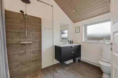 Flot badeværelse med toilet, bruser, håndvask og klinkegulv. Vaskemaskine og tørretumbler er en selvfølge. Ekstra toilet, håndvask, bruser og klinkegulv. Max. 1 husdyr er tilladt. Ikke ryger hus. Har man el-bil eller en Plug-In hybrid, så er der til huset et type 2 ladestik, der kan lade op til 11 kWh – den passer til blandt andet Tesla.