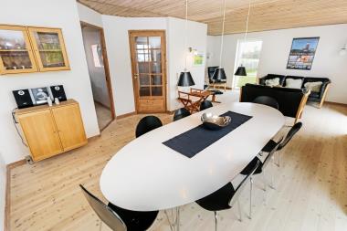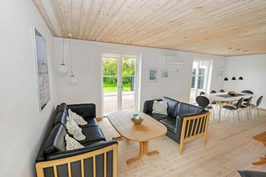 Huset er 180 m2 fordelt på 2 etager. Fra den store gårdsplads ved huset er der mulighed for 2 indgange via hver sin entré. Hyggeligt køkken med komfur, kogeø med keramiske kogeplader, emhætte og indbygningsovn. Masser af service / køkkengrej, opvaskemaskine, køle / svaleskab, mikroovn og bord med siddepladser. Fra stuen er der via en fransk glasdør adgang til en dejlig opholdsstue med spisebord med siddepladser til alle, lædermøbler, radio, Smart-TV med danske og tyske programmer samt mulighed for streaming af TV / radio / Apps. Den opsatte varmepumpe i stueetagen sørger for et minimalt forbrug til opvarmning. I stueetagen er der 1 soverum (1DS). Der er 2 badeværelser med toilet, håndvask, bruser og gulvvarme. Bryggers med Vaskemaskine, tørretumbler og stir separat fryser. Barneseng og højstol til de små medrejsende. Der er ny slebne trægulve i køkken og i opholdsstuen. Ikke ryger hus. Max 1 husdyr tilladt.