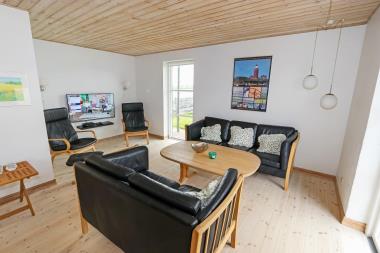 Flot rummelig hus i 2 etager. Godt indrettet, store rum og god møblering. Særdeles velegnet til familier som ønsker god plads både inde og ude. Stor velplejet grund med bl.a. parkeringsplads, boldbane med mål, bålplads, legeplads med gynger, sandkasse og trampolin. Gratis trådløst internetadgang. Stue: Fladskærm med DR 1 og TV 2 Parabol (dog kun tyske kanaler), stereoanlæg med CD. Køkken: Komfur, mikroovn, miniovn, opvaskemaskine, køle/svaleskab. Bryggers: Vaskemaskine, tørretumbler, 340 L fryser.4 soverum: (1 DS + 1 S) + (3 S) + (2 S) + (1 DS). Barneseng. Barneseng. 2 Badeværelser: Toilet, håndvask, bruser og gulvvarme. 3 store solterrasser med havemøbler og grill.