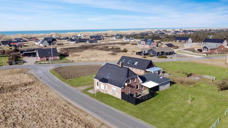 Huset er beliggende på en naturgrund med en lukket terrasse mod øst med havemøbler, solvogne og en sandkasse til børnene. På den anden side af huset er der også en lukket terrasse. Huset ligger i Vrist by og blot 350 m fra det dejlige Vesterhav, som hver dag har en ny historie at fortælle. Ønsker man aktiviteter og indkøbsmuligheder ligger havnebyen Thyborøn blot 15 min kørsel fra huset, i Thyborøn finder I også en fantastisk skøn badestrand meget velegnet til børn. Lemvig er også blot en kort køretur fra huset og her finder I en hyggelig havnepromenade med legeplads, flere gode restauranter og indkøbsmuligheder. Et dejligt, praktisk indrettet feriehus med god plads.