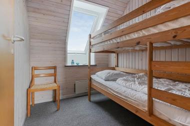Dette velindrettede feriehus ligger centralt i byen Vrist, kun 250 m fra købmand og 350 fra Vesterhavet. Huset er ombygget og moderniseret i 1993 og delvis renoveret i 2022. 4 soverum: DS + første etage: DS + 2 ES + 1 køjesenge. Badeafdelingen er indrettet med sauna, boblebad og brus. Køkkenet er optimalt indrettet. Stuen er med tv med boxer mini abonnent. Ekstra rum med bordtennis. Åbent lukket terrasse med havemøbler og liggestole og med sandkasse til børnene. Huset er med dets indretning og udstyr også velegnet til 2 familier både i sol, regn og blæst. Her er der trådløs internetadgang, hvilket er gratis.