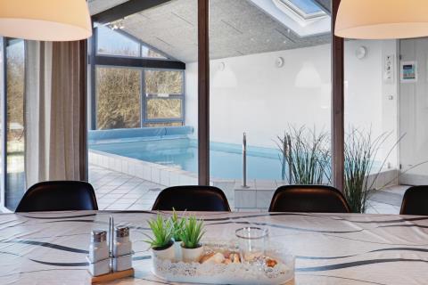 Huset er rigtig godt egnet, også til 2 familier. Et dejligt hus som kan byde på mange gode oplevelser både ude og inde. Gratis fiber internetadgang (høj hastighed). Husets indretning: Husets køkken, som er kombineret med stuen, er veludstyret bl.a. med opvaskemaskine og mikroovn, der findes selvfølgelig også et køle-fryseskab. Den hyggelige stue er indrettet med komfortable møbler, brændeovn og fladskærms-TV med DR-kanaler, chromecast, parabol til de tyske kanaler og et stereoanlæg. 4 gode soverum som er indrettet med 1DS + 1DS + 2S + 2S samt hems med 2 sovemuligheder. Det er muligt at lave dobbelt- og enkeltsenge på alle værelser. Til de små er der en barneseng og barnestol. Huset har 2 badeværelser, hvor det ene er med toilet, håndvask, bruser og gulvvarme, samt sauna. Det andet er ligeledes med bruser og gulvvarme og der er her bordplads til en puslepude. Det dejlige poolrum har panoramavinduer til 3 sider, som giver et dejligt lysindfald. Udover poolen er der et spabad. Der er installeret luft til vand varmepumpe i huset, og poolen opvarmes via denne. Dette gør huset meget energivenligt. Huset er selvfølgelig også udstyret med vaskemaskine og tørretumbler. Har man el-bil eller en Plug-In hybrid, så er der ved Ladeboks til Type 2 ladestik, der kan lade op til 11 kWh. Depositum vintersæson kr. 4500 og sommersæson kr. 2200.