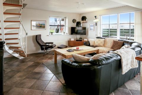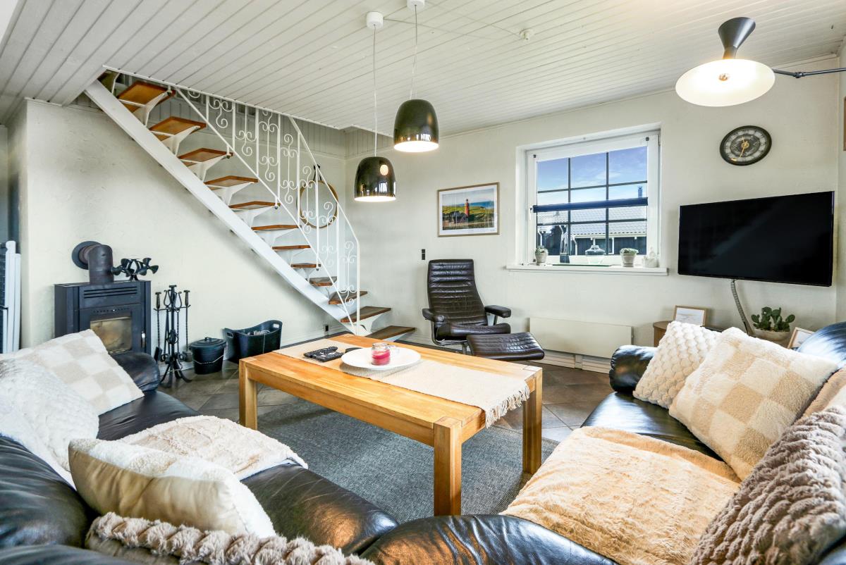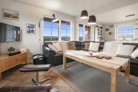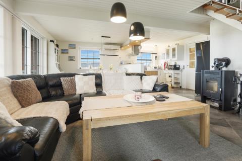 Velholdt, rummeligt feriehus med stråtag – beliggende i rolige omgivelser kun ca. 180 m fra Vesterhavet. Huset er lyst og venligt indrettet med bla. dejligt køkken med køleskab med frys, mikroovn og opvaskemaskine. Køkkenet er kombineret med stuen hvor der er brændeovn. TV med DR samt DVD. Gratis trådløst internetadgang. Dejligt badeværelse med brus og spabad samt direkte adgang til husets sauna. 4 soveværelser: Første etage: (dobbeltseng) + (dobbeltseng ) + et værelse med en seng + et værelse med en seng. Til huset hører en delvis overdækket terrasse med havemøbler og liggestole samt grill. Alt i alt et hyggeligt feriehus direkte ved Vesterhavet.