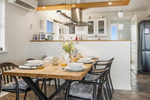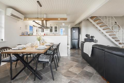 Dette stilfuldt renoverede sommerhus fra begyndelsen af 2026 byder på en vellykket kombination af komfort, ro og ægte dansk hygge. Huset ligger på en 1.414 m² stor naturgrund i rolige omgivelser, for enden af en blind vej og kun få minutters gang fra stranden.