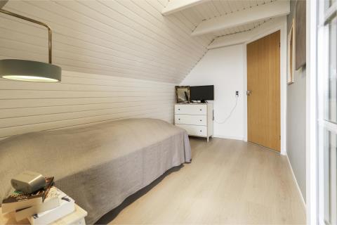 Fire soveværelser i elegant hotelstil – to med dobbeltsenge og to med enkeltsenge – samt nye kvalitetssenge sikrer afslappende nætter. Fra to af soveværelserne på første sal er der adgang til en lille balkon, hvor I kan nyde udsigten og lyden af havet. I både soveværelserne og badeværelset sørger infrarøde varmeelementer med behagelig strålevarme for et særligt komfortabelt indeklima.