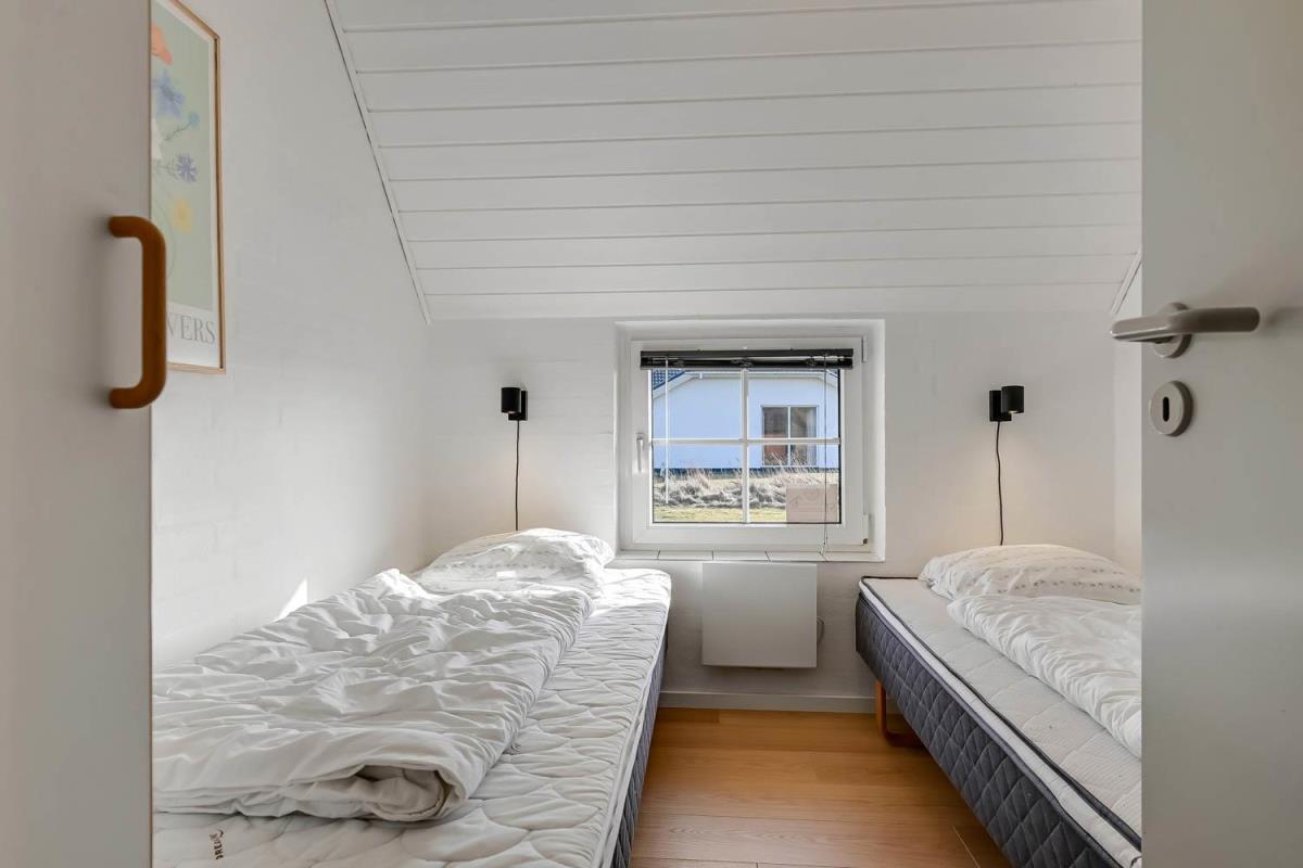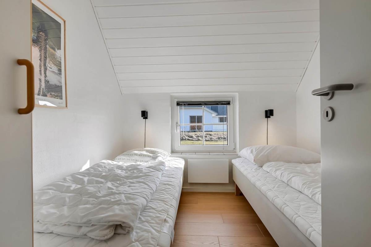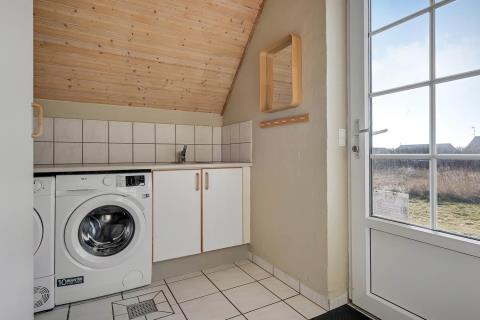 Udgang til dejlig, indhegnet terrasse med havemøbler, liggestole og grill. Herfra er der naturligvis udsigt til klitterne, og går man over dem, er man direkte på stranden. Til børnene er der gynger. Et perfekt hus til de gæster som ønsker at bo direkte ved Vesterhavet i lækre naturomgivelser.