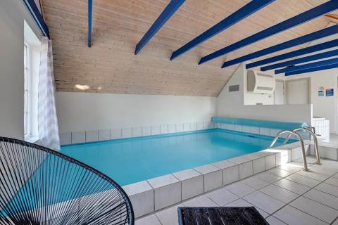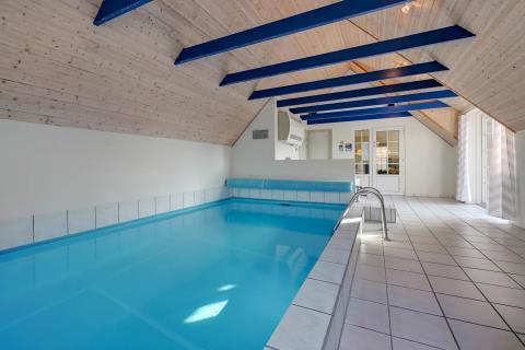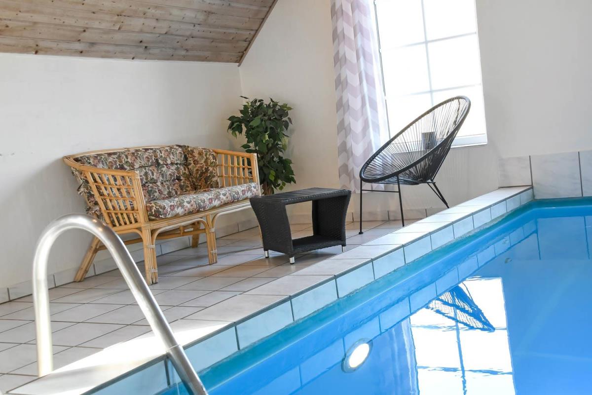Dette fantastiske feriehus er lækkert indrettet med kombineret køkken/alrum, i stuen er der brændeovn, fladsskærms-TV med DR-kanaler og parabol med tyske kanaler. Køkkenet er veludstyret og råder over bl.a. opvaskemaskine og mikroovn samt køle-fryseskab. 4 gode soverum som indeholder 1DS + 1DS + 2S + 2S. Huset har 2 badeværelser, som begge er med brusenische og gulvvarme, det ene har direkte adgang til saunaen. Poolrummet har ud over poolen, som er med modstrømsanlæg, også et stort 5 personers spabad. 1 husdyr er tilladt. Depositum vintersæsonen kr. 4500 og sommersæsonen kr. 2200.