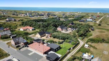 Der er masser af plads på 1.340 m2 indhegnet, store grund og på det pragtfulde terrasseanlæg er der masser af muligheder for en plads i solen eller i skyggen, da en del af terrassen er delvis overdækket. Der er naturligvis havemøbler og solvogne samt gasgrill. Hvad med en tur i den udendørs spa eller den udendørs sauna som også er ved terrassen. Helt speciel oplevelse at sidde i den udendørs spa på de mørke aftener med den klare stjernehimmel, ren terapi for sjæl og krop eller måske en frisk dukkert i Vesterhavet og så hjem og en tur ind i udendørs sauna, der er en udendørs bruser med koldt vand. I haven er der også et pragtfuldt orangeri med havemøbler, som er perfekt til en hyggestund uanset vejret. 5 – 10 min fra huset ligger Vesterhavet, der altid inviterer til en frisk gå- eller løbetur. Lige på den anden side af vejen ligger områdets købmand som har sæsonåbent og som i sæsonen byder på frisk morgenbrød. Her kan de daglige indkøb også klares. Området madsted ligger ca. 3.000 fra huset. Inden for 25-30 minutter kan flere aktiviteter og shopping muligheder nås. Ideelt indrettet hus til op til 15 personer. Så hvad enten I er til aktiv ferie eller total afslapning, danner dette flotte feriehus en dejlig ramme både hvad angår hus, beliggenhed og omgivelser