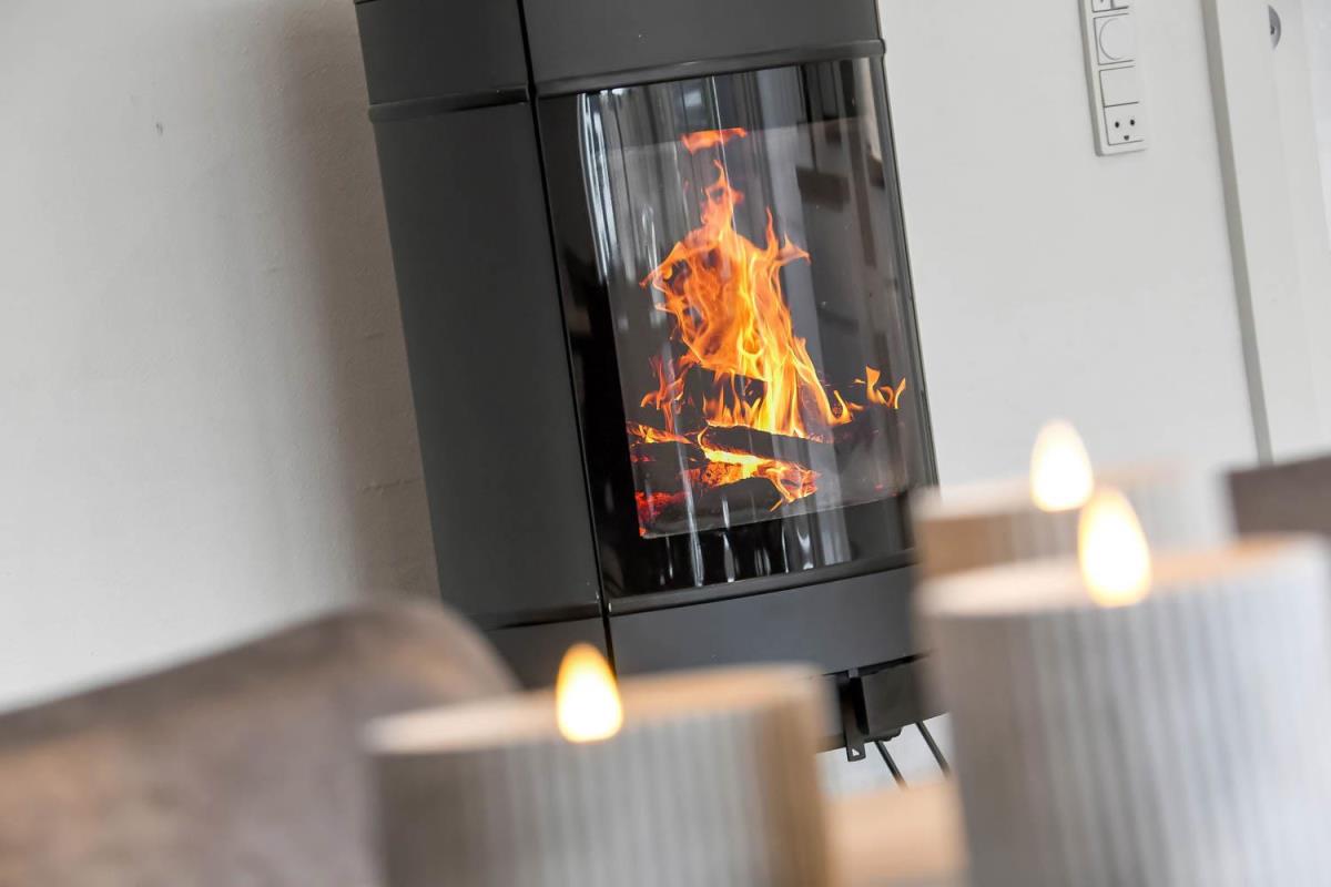 - Varme: Brændeovn
