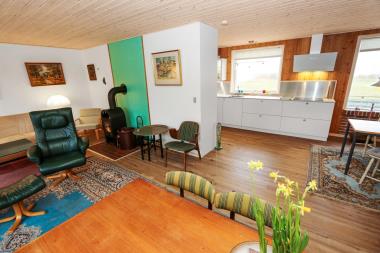 Dette Feriehus på 80 kvm er indrettet med et kombineret køkken og opholdsrum. Stuen er indrettet med polstermøbler, TV med danske og tyske programmer. Der er 2 soverum: 1DS og 2S. Køkkenet er velindrettet og har alt i service og kogegrej, der er el-keramisk kogeplade, køleskab, 100 l. fryser, mikroovn, opvaskemaskine og indbygningsovn. Badeværelset er med toilet, håndvask, bruser og gulvvarme. Der er fibernet i huset. I stuen er der en dejlig brændeovn som giver en dejlig varme uanset årstid. Ikke rygerhus. 1 husdyr er tilladt. Vaskemaskine.