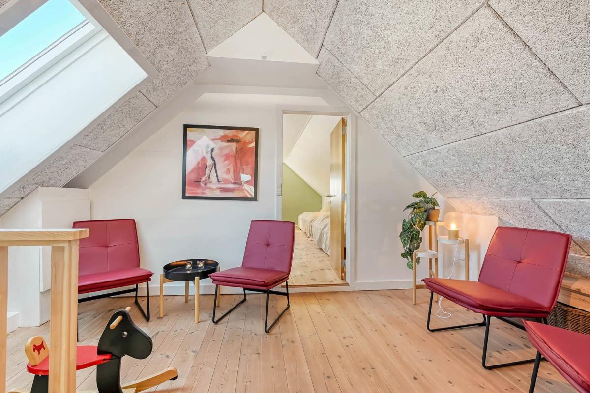 Huset rummer i alt fire rummelige soveværelser. I stueetagen findes to værelser, begge med dobbeltsenge. På 1. sal ligger yderligere to værelser – det ene med dobbeltseng og det andet med både dobbeltseng og to enkeltsenge, hvilket gør huset særligt velegnet til både familier og vennegrupper.