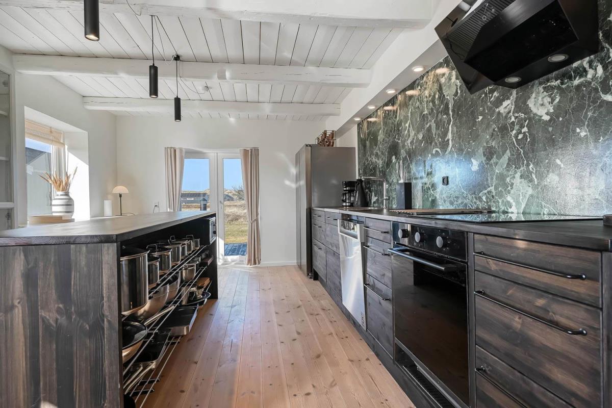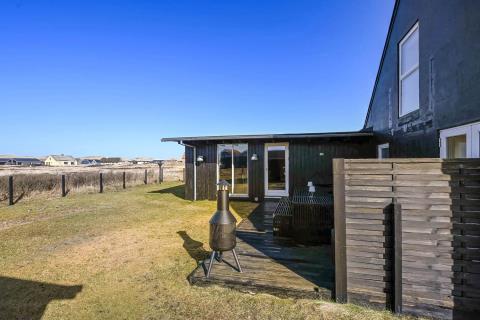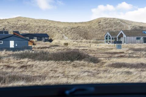 Huset ligger på en 850 m² stor indhegnet grund, hvor også hunden trygt kan løbe frit. Fra køkkenet er der udgang husets store terrasse med havemøbler, grill og to solvogne. Herfra kan I nyde den skønne udsigt mod klitterne og høre Vesterhavets bølger i baggrunden. Derudover findes 2 mindre terrasser – det ene med udgang fra et af soveværelserne og den anden med udgang fra stuen – så I har mulighed for at finde både sol og læ fra flere sider af huset.