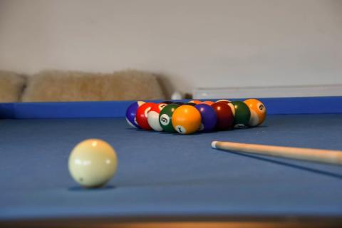 I husets anden ende finder I det imponerende aktivitetsrum, som uden tvivl bliver et naturligt samlingspunkt under ferien. Her kan I udfordre hinanden i billard, bordtennis, bordfodbold og dart, og der er rig mulighed for mange timers sjov og konkurrence.