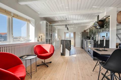 Velkommen til dette rummelige og gennemrenoverede feriehus på hele 227 m² fordelt på 2 etager. Huset er moderniseret i 2026 og fremstår lyst, stilfuldt og indbydende – perfekt til op til 8 personer, der ønsker komfort, aktiviteter og en fantastisk beliggenhed tæt på Vesterhavet. Ikke rygerhus.