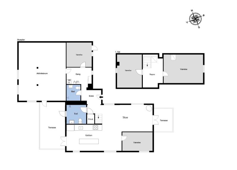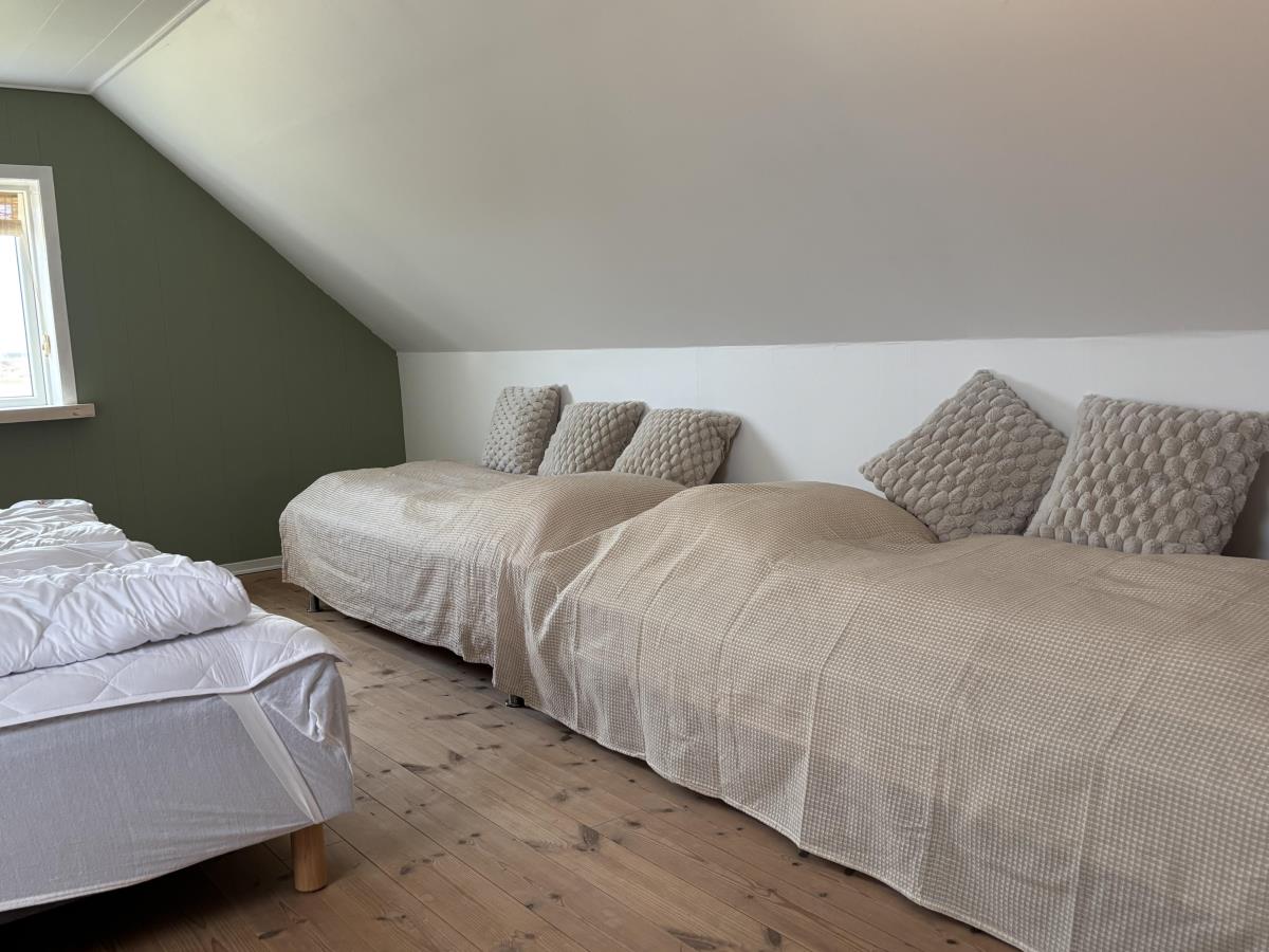 Huset på hele 220 m2 er fordelt på 2 etager og er blevet renoveret i løbet af 2024. En lys entré byder velkommen til husets indre. Fra entreen kommer man ud i husets køkken med køle-/fryseskab, opvaskemaskine, glaskeramisk komfur, emhætte og mikroovn. I køkkenet er der et lille siddehjørne. Fra køkkenet kommer man ud til husets stue. Her er der plads til at familien og venner kan samles om spisebordet eller i sofahjørnet. Stuen er indrettet med læder- og polstermøbler, stort fjernsyn med danske og tyske kanaler og radio. I husets anden ende ligger et stort aktivitetsrum med billard, bordtennis, bordfodbold og dartskive. Så der er rig mulighed for at udfordre hinanden i spil i løbet af ferien. Centralt i huset ligger badeværelset med toilet, håndvask og bruser. Huset har 4 rummelige soveværelser fordelt med 3 værelser i stueetagen og 1 værelse på 1. sal (1DS, 1DS, 1DS, 1DS). Der er yderligere liggemuligheder på 1. sal. Fra 1. sal er der også udgang til en altan med skøn udsigt mod klitterne. Skulle det ske, at der er behov for at vaske tøj i løbet af ferien, er der vaskemaskine og tørretumbler. Desuden er der en barnestol til rådighed til husets mindste gæst.