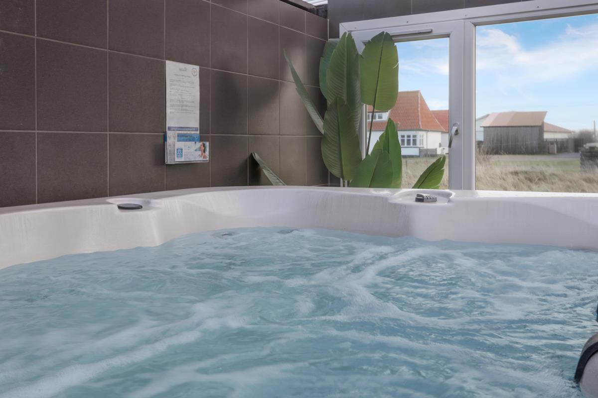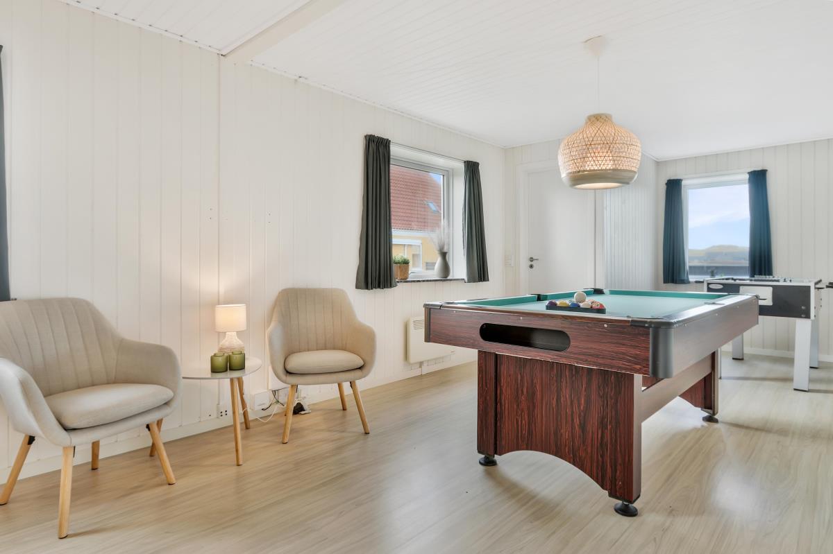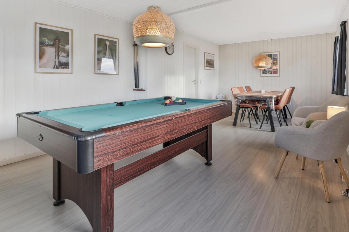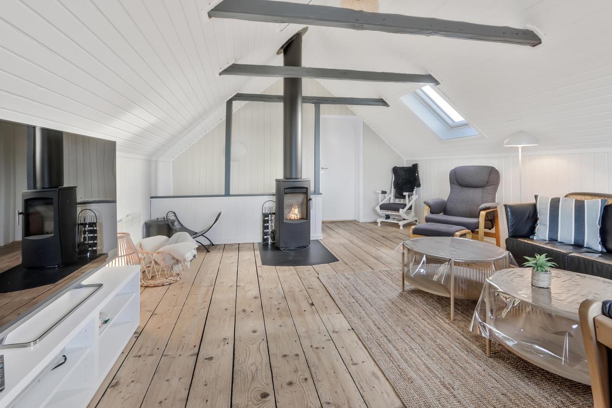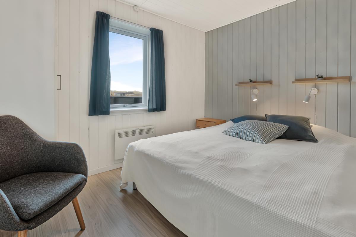 Køkkenet er helt nyt og der er bla opvaskemaskine,køle/fryse skab og mikroovn. I køkkenet findes der spiseplads til 2 personer. Dejligt badeværelse med gulvvarme og brus, badeværelset er med klinker på gulvet. Gæstetoilettet er med klinker, håndvask og gulvvarme. Sommerhuset har også en dejlig sauna. Lofter og vægge er beklædt med træ, ligeledes er gulvet af træ. Sommerhuset har to stuer og den ene er i underetagen hvor der er spisebord til 6 personer samt aktiviteter såsom bordfodbold og billardbord. Den anden stue er ovenpå og her er masser af hygge med fritlagte bjælker og med udsigt til klitterne. Her findes fladskærm med dr 1 samt DVD-afspiller og der er sofa arrangement samt brændeovn. Huset har 3 soveværelser: 1DS + 2S + 1DS. Fra soveværelset ovenpå kan man nyde udsigten udover markene. Der er vaskemaskine i baggangen. Der er installeret varmepumpe i huset og det betyder at du som gæst kan spare en del på din elvarmeregning – varmepumpen leverer op til 4 gange så meget effekt som den bruger, det betyder at for hver kilowatt-time pumpen bruger yder den varme svarende til ca. 4 kW energien udnyttes dermed langt. Udenfor er der anlagt et wellnessrum med et stort spa indeni, så man er i ly for vejret.