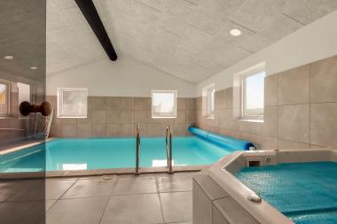 Flot pool/wellnessrum hvor familien rigtig kan slappe af og more sig i den store pool, i det indbydende standvandspabad til 4 personer. Fra poolrummet er der direkte adgang til husets sauna samt badeværelse.