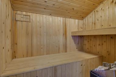 Begge badeværelser har bruser, toilet og håndvask. Det ene er indrettet som en lille wellnessafdeling med både sauna og spa – perfekt til afslapning efter en frisk tur til Vesterhavet. Derudover findes både vaskemaskine og tørretumbler i huset, så feriens praktiske behov nemt kan klares.