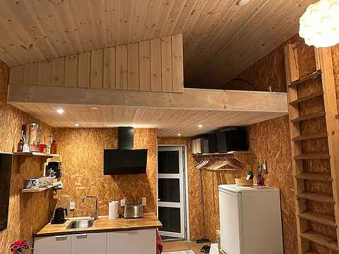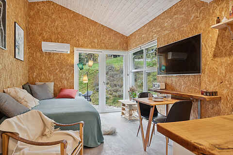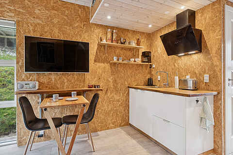 Nyere “Tiny House” på 24 m² giver en enkel og behagelig ramme for to til tre personer. Indretningen er kompakt uden at føles trang, og alt det praktiske fungerer gnidningsfrit, så feriefokus kan ligge på ro, natur og nærvær.