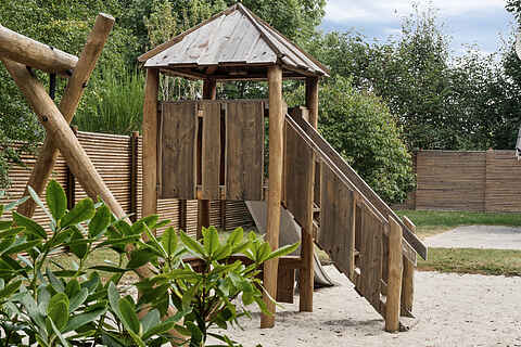 I haven er der gode muligheder for leg med stor gynge og legetårn til børnene. Området byder også på flere restauranter, street food, minigolf og indkøbsmuligheder i Brugsen – alt sammen i kort afstand. Derudover er der tæt på skov, som er perfekt til gåture og naturoplevelser