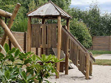 I haven er der gode muligheder for leg med stor gynge og legetårn til børnene. Området byder også på flere restauranter, street food, minigolf og indkøbsmuligheder i Brugsen – alt sammen i kort afstand. Derudover er der tæt på skov, som er perfekt til gåture og naturoplevelser