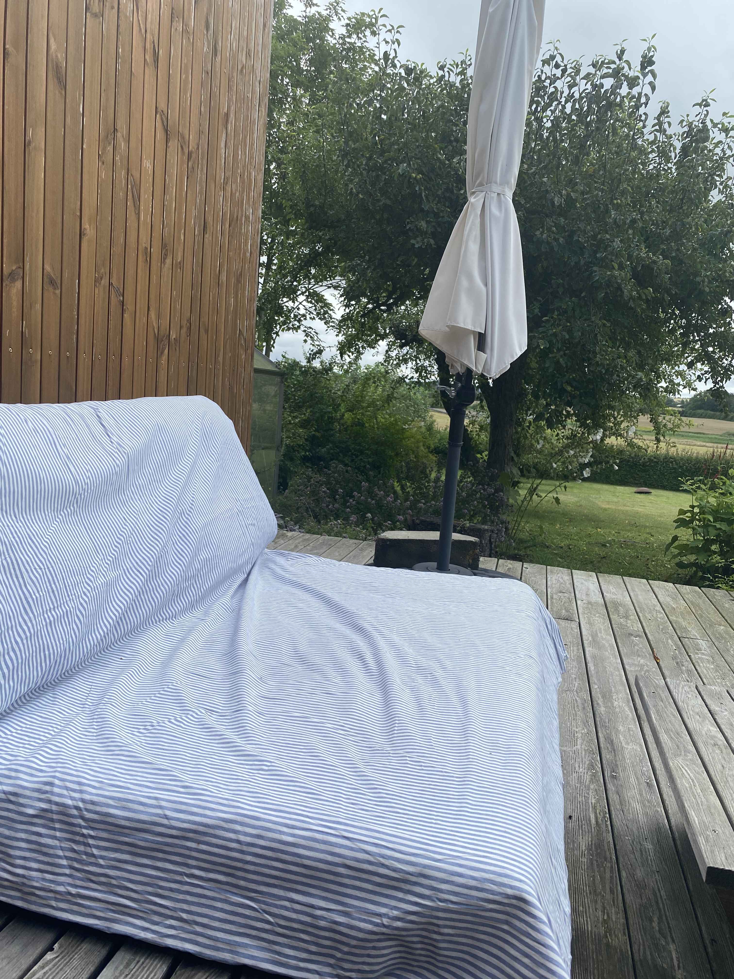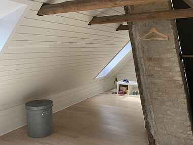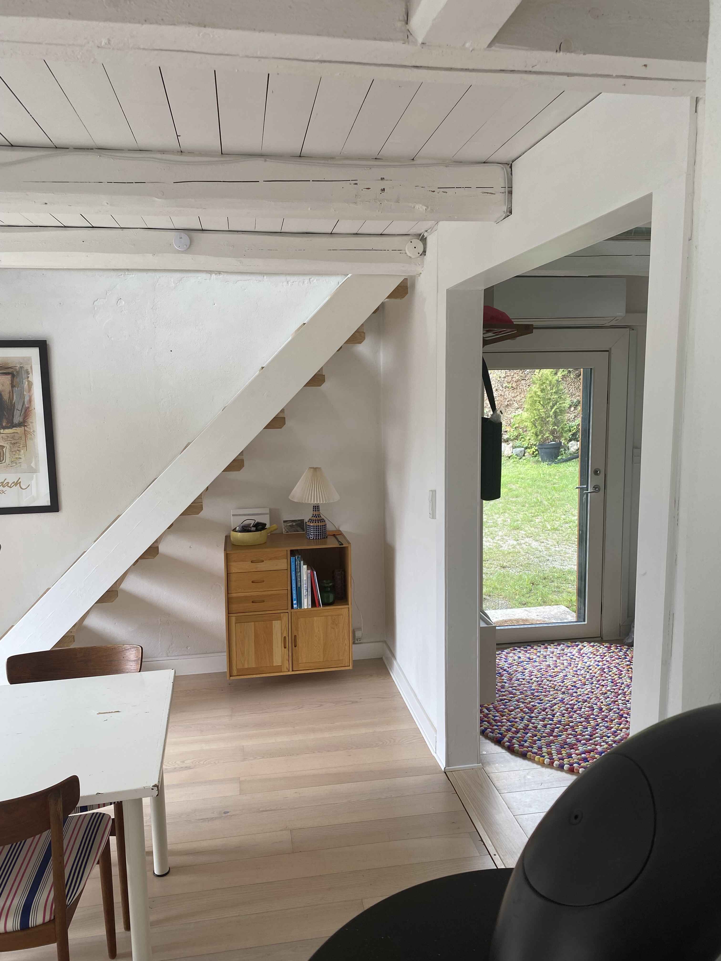 I et anneks finder man en ekstra seng, der samtidig fungerer som opbevaringsplads for hynder og støvsuger. Huset ligger ca. 1900 meter fra kysten, så både strandture og friske dyp er nemt tilgængelige i ferien.