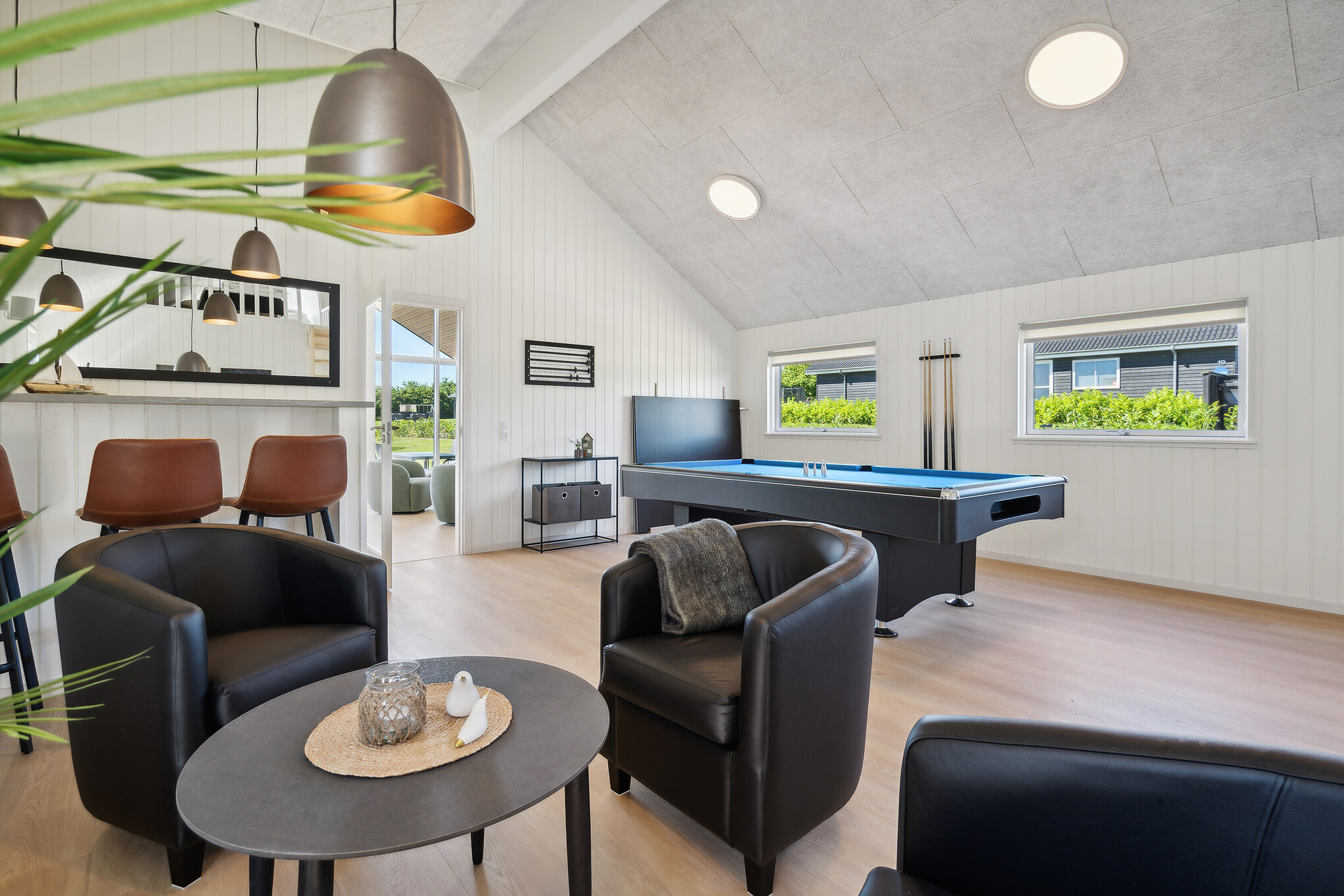 Ferien får optimale betingelser i dette rummelige sommerhus med pool, hvor både inde- og udeliv er i fokus. Huset er et velindrettet Sammenhus™ til store familier eller vennegrupper, der ønsker afslapning, aktiviteter og kvalitetstid. Den store terrasse med loungemøbler, grill og spiseplads indbyder til lange dage i det fri, mens udespa, sauna og udebruser skaber ægte wellnessstemning. Indenfor samler det lyse opholdsrum køkken, spiseplads og stue, så I nemt kan være sammen om madlavning og hyggelige stunder. Poolrummet med indendørs pool og rutsjebane byder på sjov året rundt, og aktivitetsrummet med dart, billard, bordtennis og bordfodbold giver ekstra underholdning. Huset har 18 sovepladser fordelt på 7 værelser og hems samt 3 badeværelser. Området byder desuden på fælles legeplads og multibane. Beliggende i naturskønne Ivenack i Tyskland.