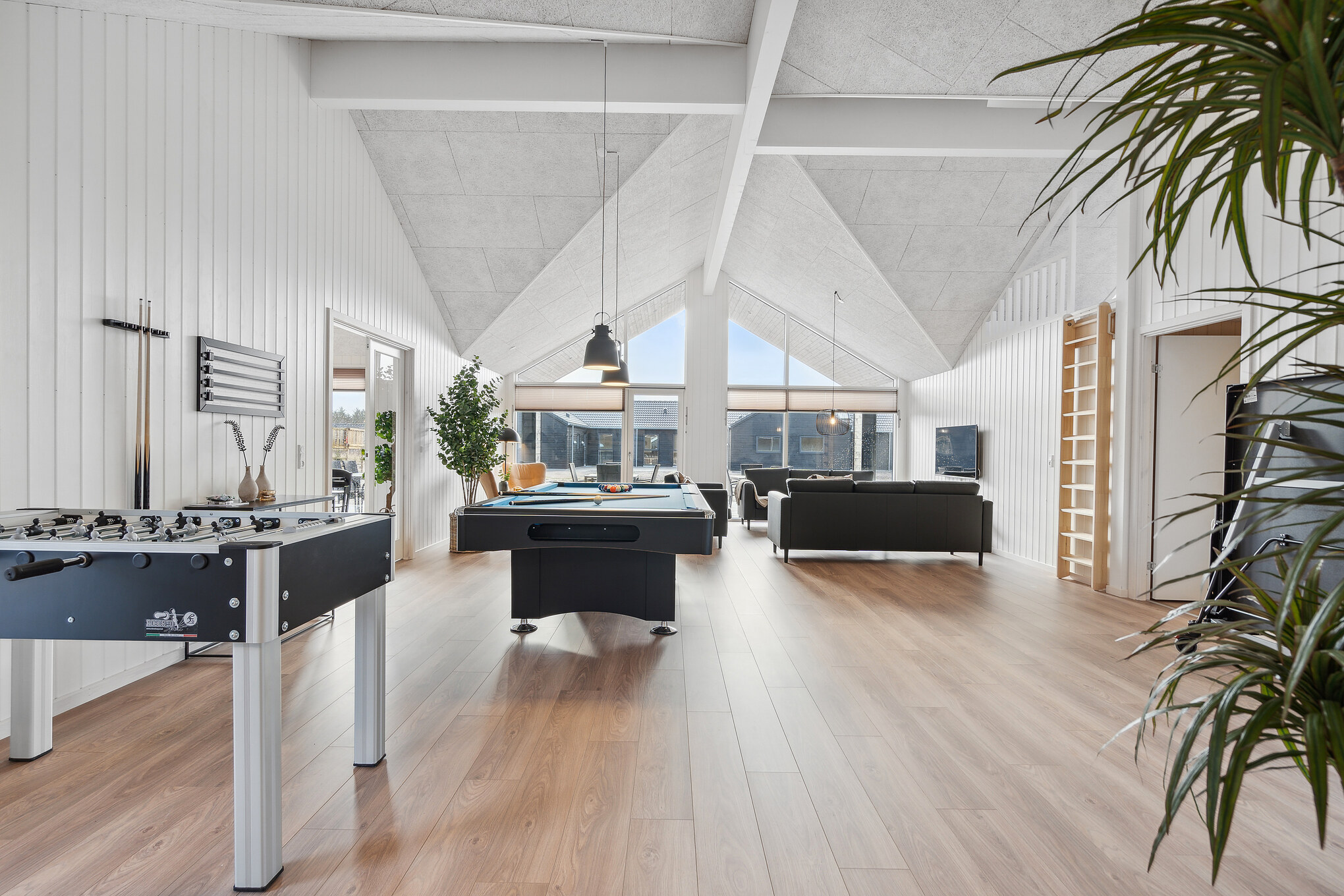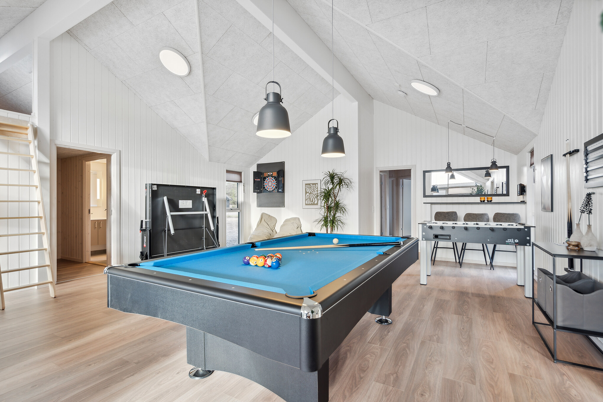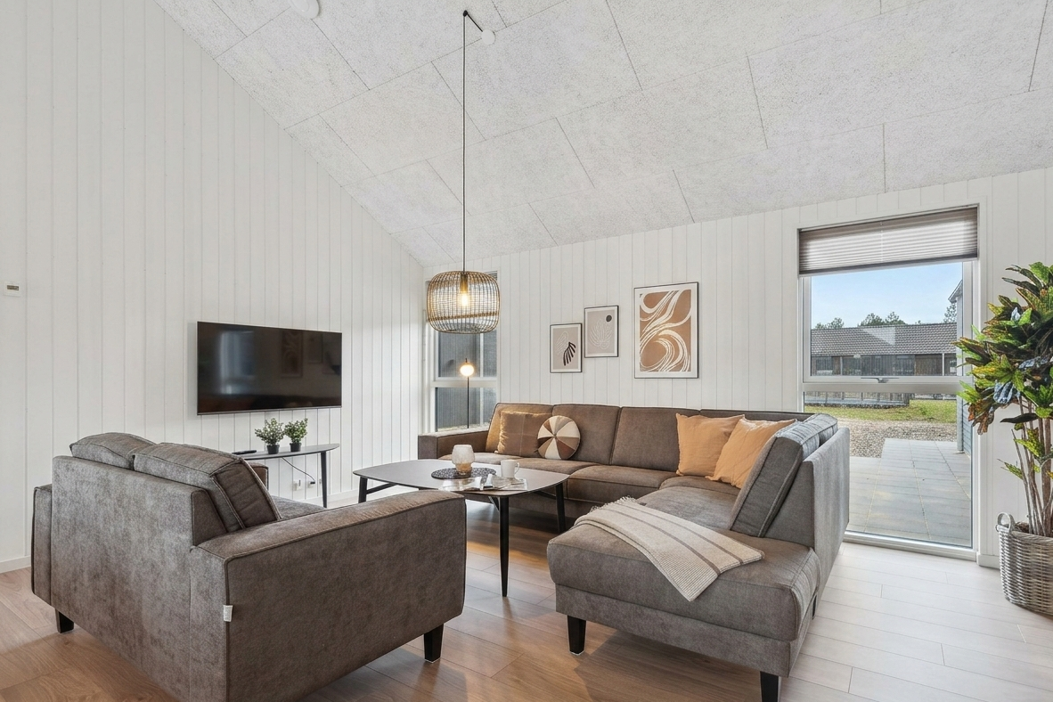 Med sin rolige stemning og naturskønne beliggenhed er Ivenack det perfekte sted for en afslappende ferie. Dette imponerende poolsommerhus er skabt til store grupper, der ønsker god plads, høj komfort og mange faciliteter samlet ét sted. Som et ægte Sammenhus™ danner huset optimale rammer for fælles oplevelser med både aktiviteter og wellness. Det rummelige opholdsrum med sort, moderne indretning samler køkken, spiseplads og stue i ét åbent miljø. XL-køkkenet gør det let at lave mad til mange, og det lange spisebord har plads til hele selskabet. Aktivitetsrummet med bar, billard, bordtennis, dart og bordfodbold bliver hurtigt feriens sociale centrum. Poolrummet med rutsjebane sikrer vandglæde året rundt, mens udespa og sauna indbyder til afslapning. Huset rummer 10 værelser, hems og 4 badeværelser. Terrassen samt fælles legeplads og multibane fuldender ferieoplevelsen.