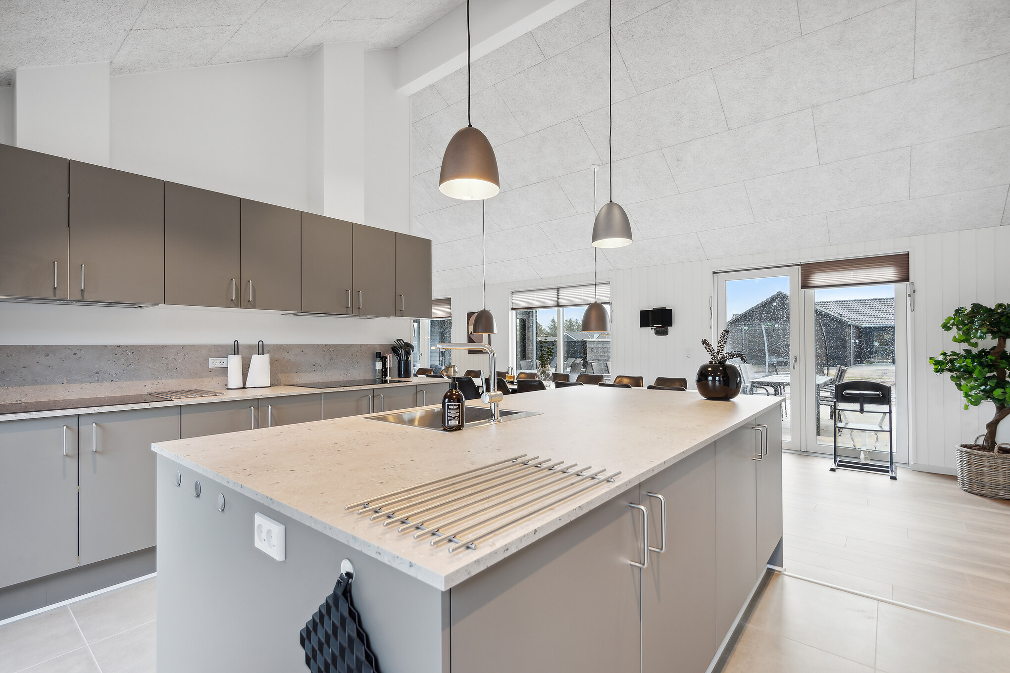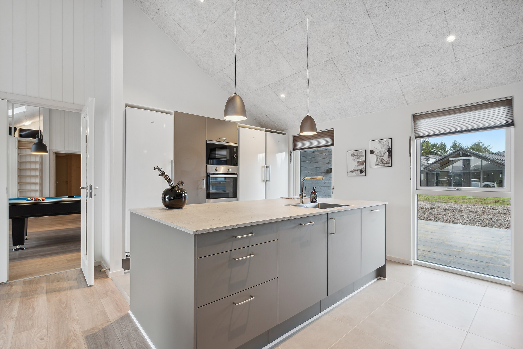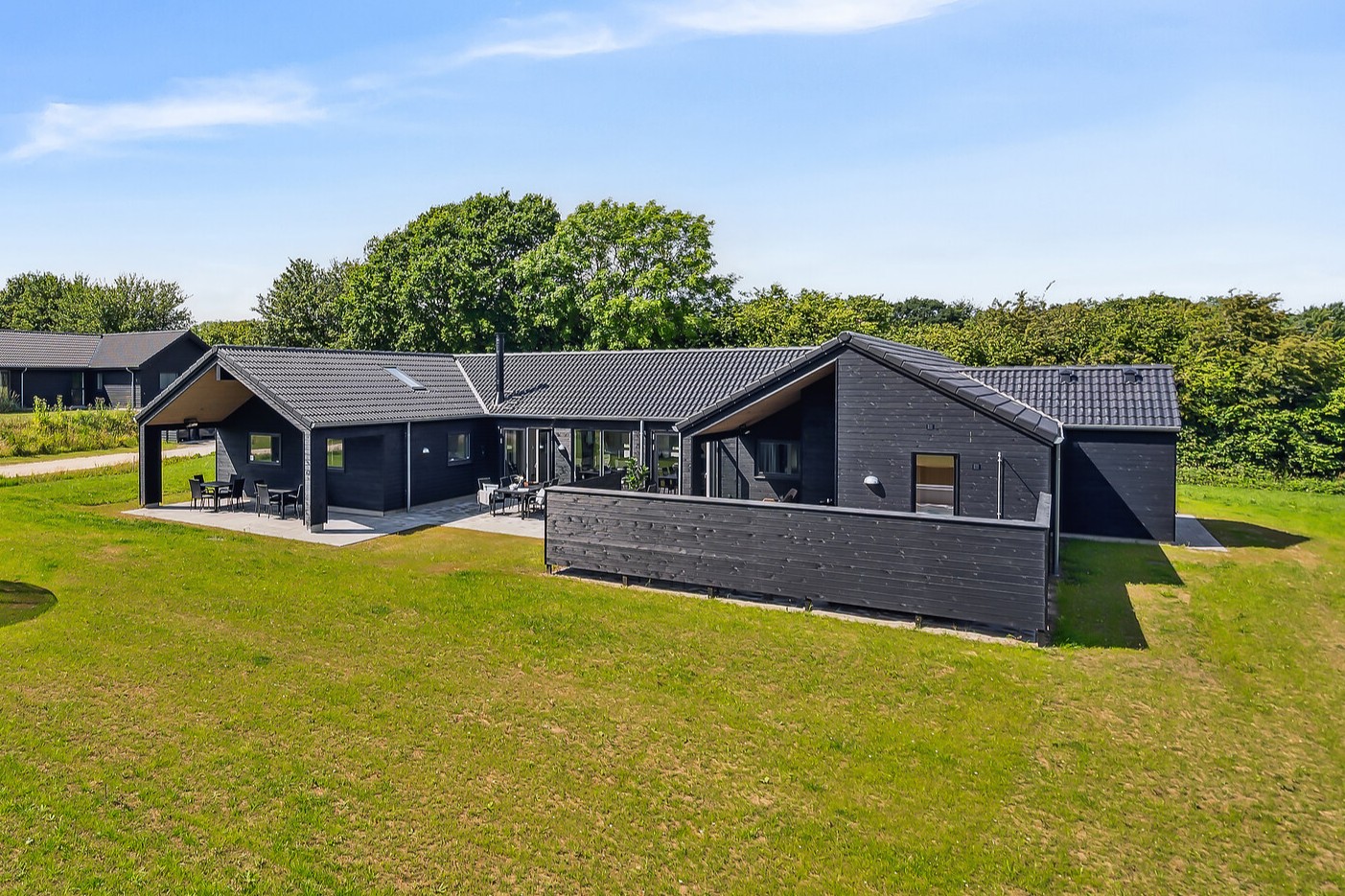 Med sin rolige stemning og naturskønne beliggenhed er Ivenack det perfekte sted for en afslappende ferie. Dette imponerende poolsommerhus er skabt til store grupper, der ønsker god plads, høj komfort og mange faciliteter samlet ét sted. Som et ægte Sammenhus™ danner huset optimale rammer for fælles oplevelser med både aktiviteter og wellness. Det rummelige opholdsrum med sort, moderne indretning samler køkken, spiseplads og stue i ét åbent miljø. XL-køkkenet gør det let at lave mad til mange, og det lange spisebord har plads til hele selskabet. Aktivitetsrummet med bar, billard, bordtennis, dart og bordfodbold bliver hurtigt feriens sociale centrum. Poolrummet med rutsjebane sikrer vandglæde året rundt, mens udespa og sauna indbyder til afslapning. Huset rummer 10 værelser, hems og 4 badeværelser. Terrassen samt fælles legeplads og multibane fuldender ferieoplevelsen.